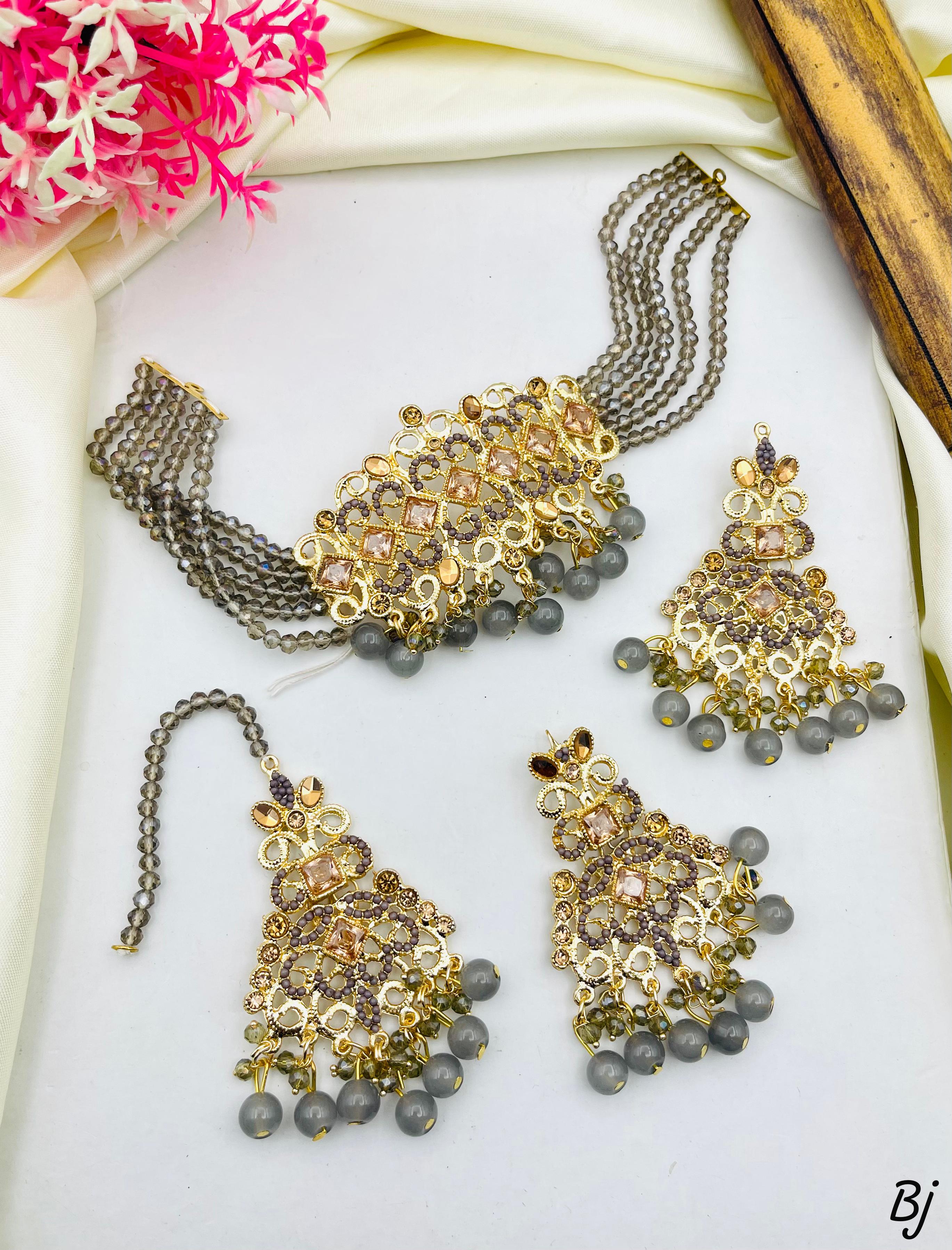 Fancy Beautiful Delicate Design Zircon Work Choker Set With Earings And Tika For Her😍😍😍