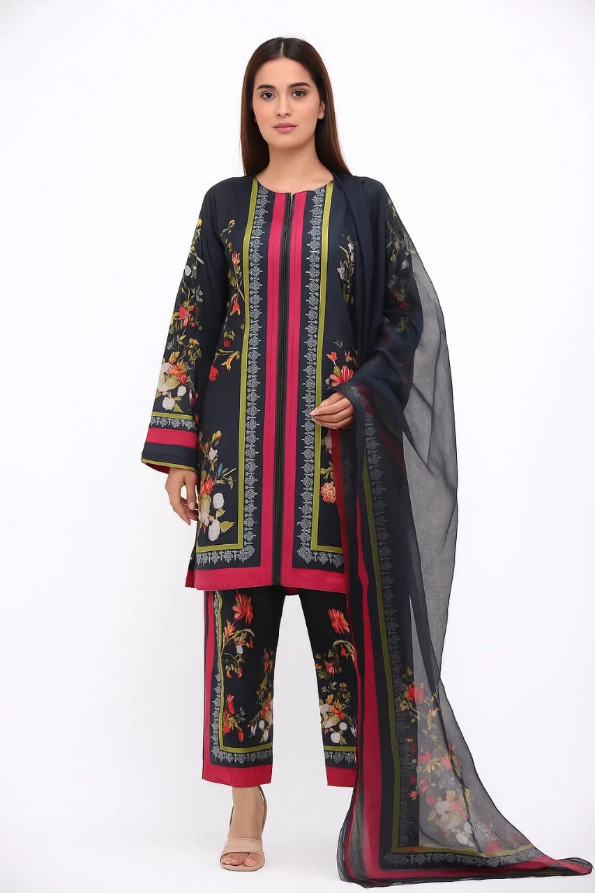 STUFF TEXTURE SWISS LAWN DIGITAL PRINTED SHIRT WITH DIGITAL PRINTED FLAPPER AND 2.5 METER MUNAR RUPATTA